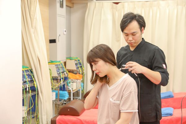 例えば肩や腰のつらさが「どこから来ているのか」がわかりにくいときでも、電気をあてることで原因の場所を見つけ出し、ピンポイントで施術できます。